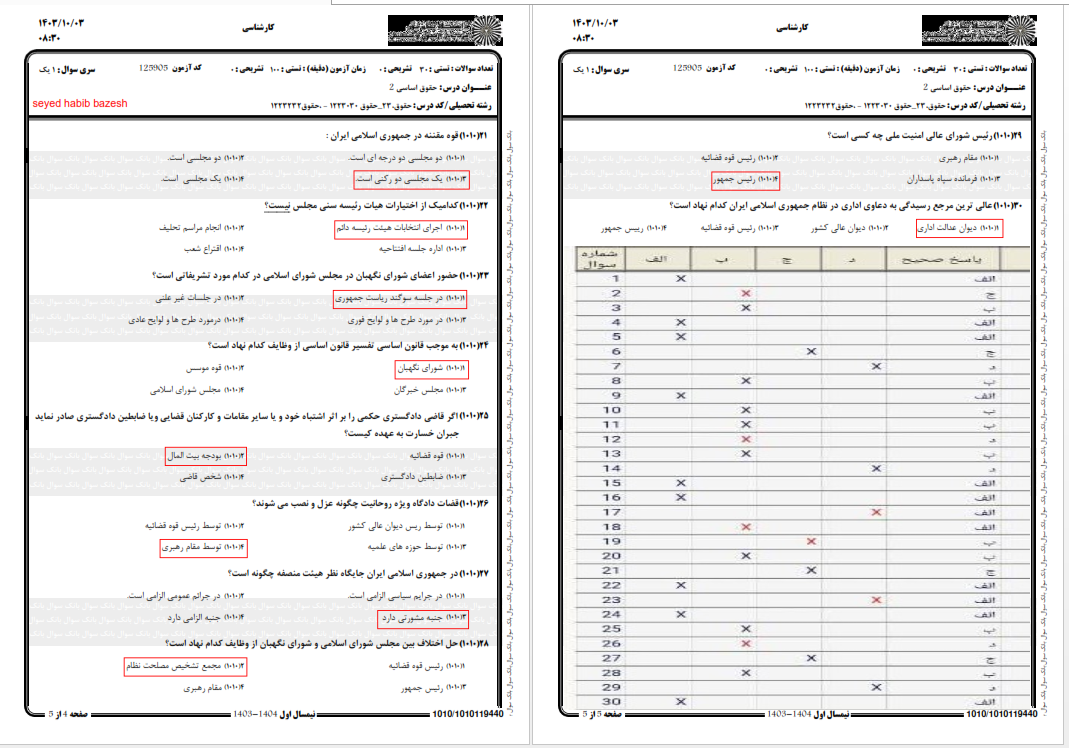 نقد سوالات حقوق اساسی 2 دانشگاه پیامنور