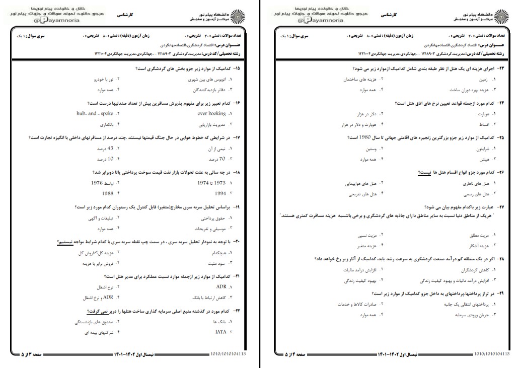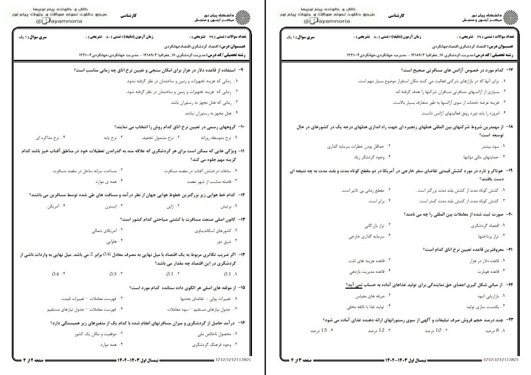نقد کتاب اقتصاد گردشگری جزوه پیام نور