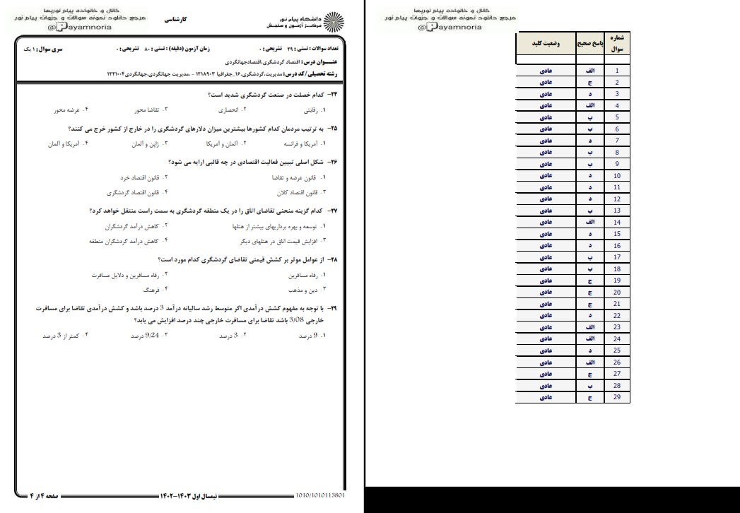 پیدیاف کتاب اقتصاد گردشگری جزوه پیام نور