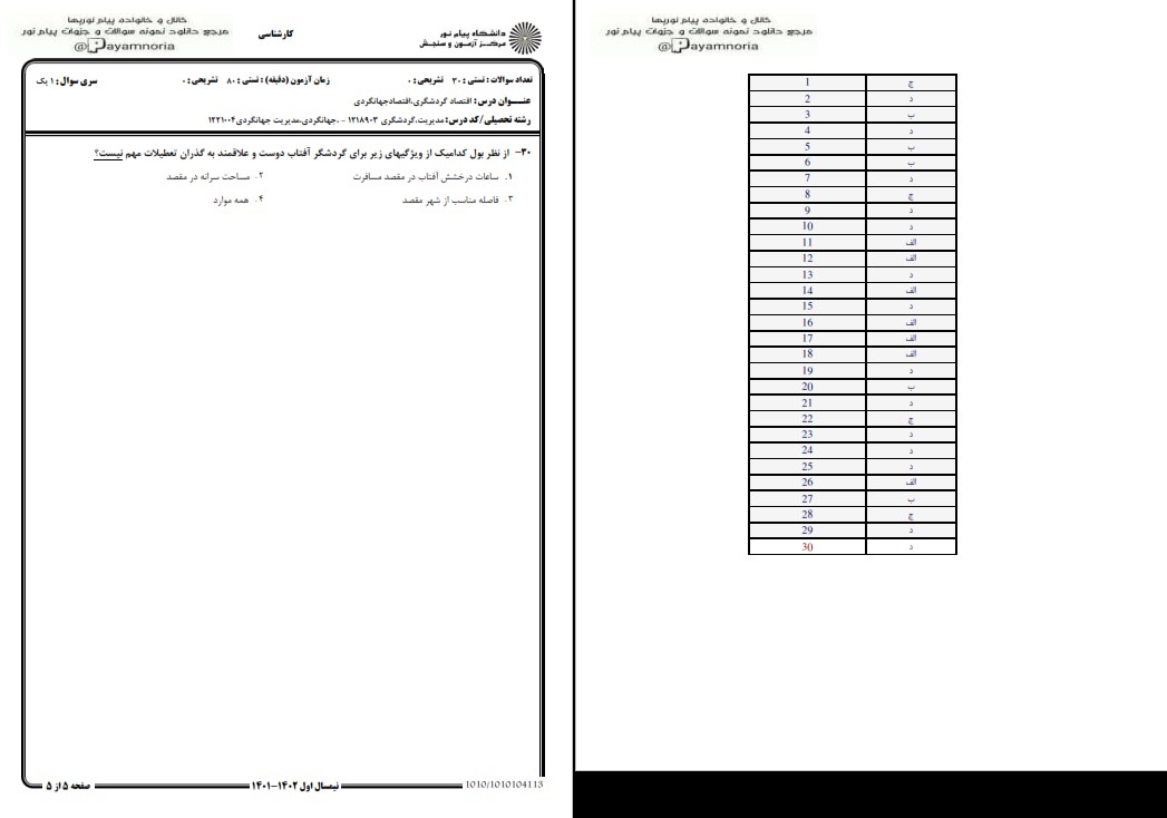 خرید پیدیاف کتاب اقتصاد گردشگری جزوه پیام نور