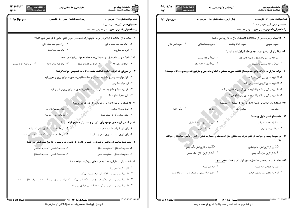 نقد کتاب نمونه سوالات آیین دادرسی مدنی ۳ دانشگاه پیام نور