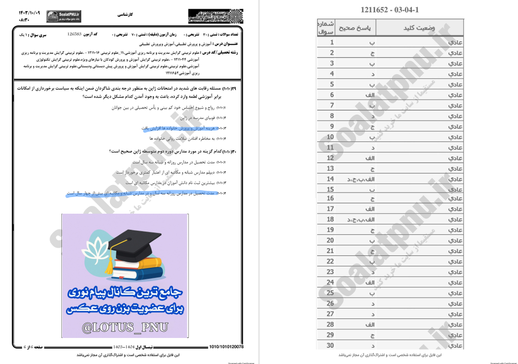 کتاب نمونه سوالات آموزش و پرورش تطبیقی دانشگاه پیام نور PDF