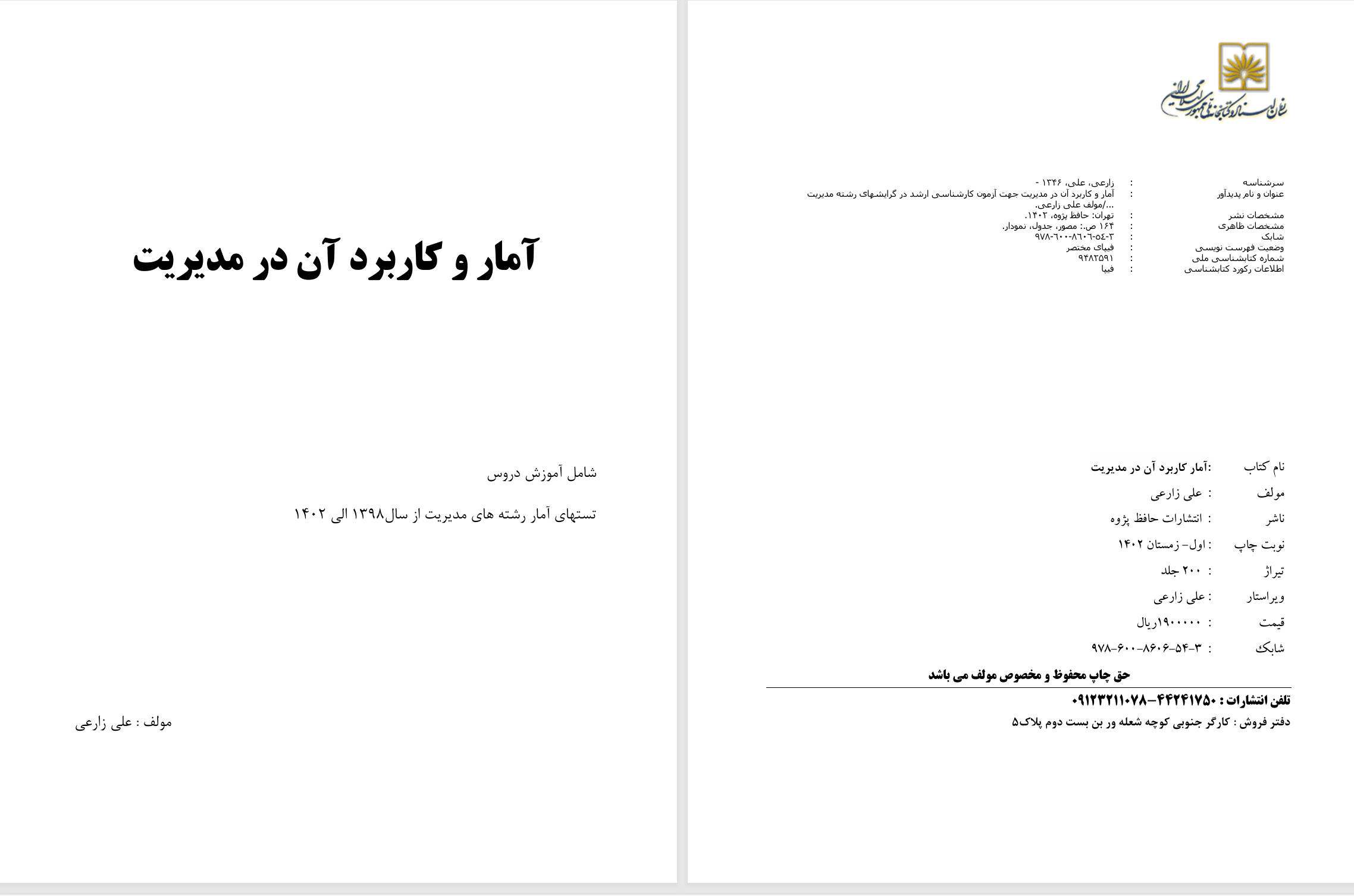 معرفی کتاب آمار و کاربرد آن در مدیریت علی زارعی